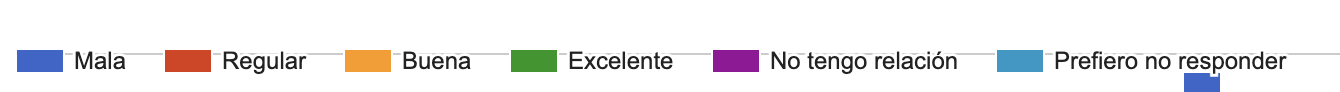Donde 19 contestaron que tienen una mala relación, 8 regular, 6 no tengo relación,4 buena y uno prefirió no responder: